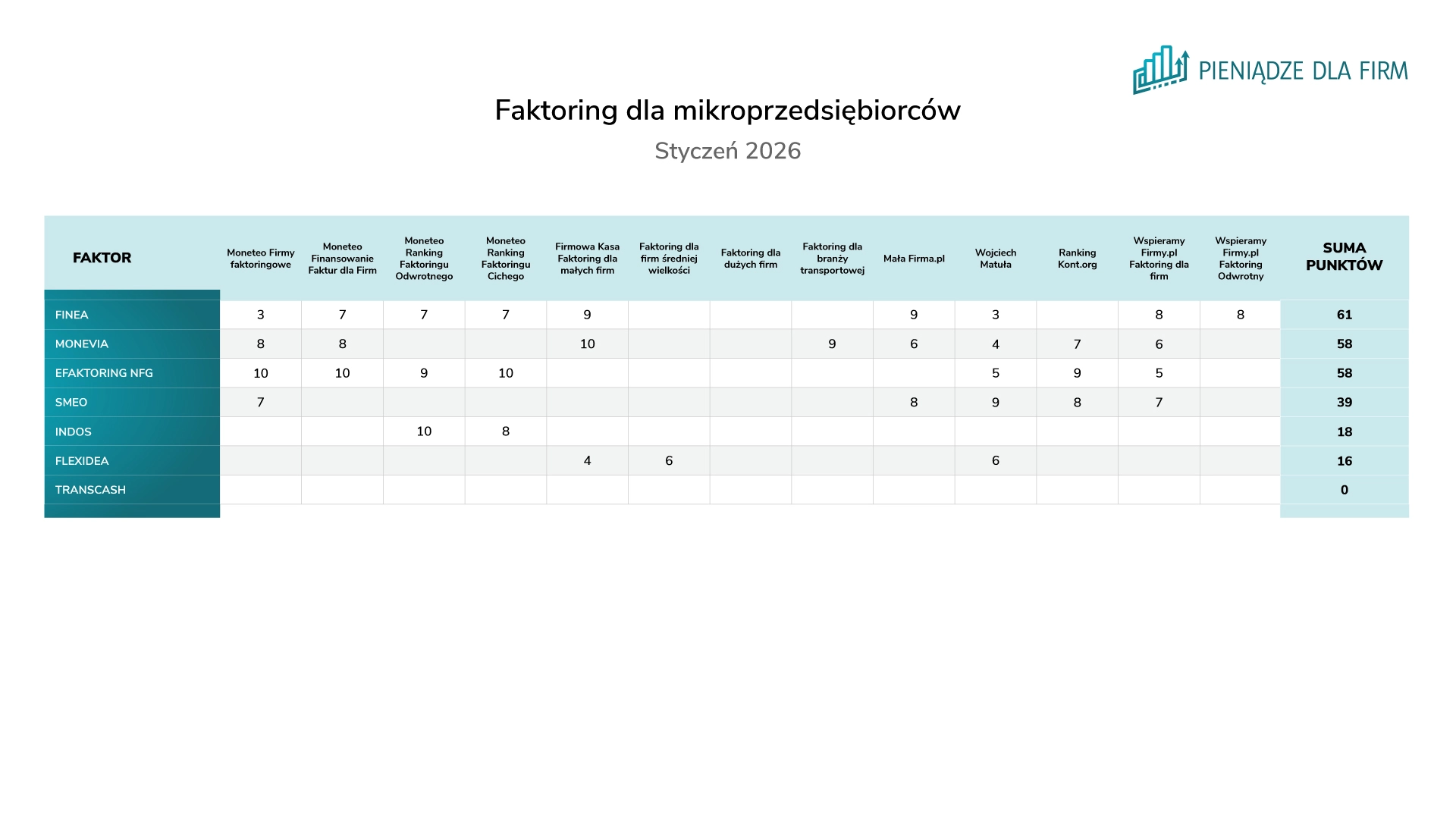 *twórcą rankingu jest eFaktor S.A., będący podmiotem powiązanym z FINEA S.A.
